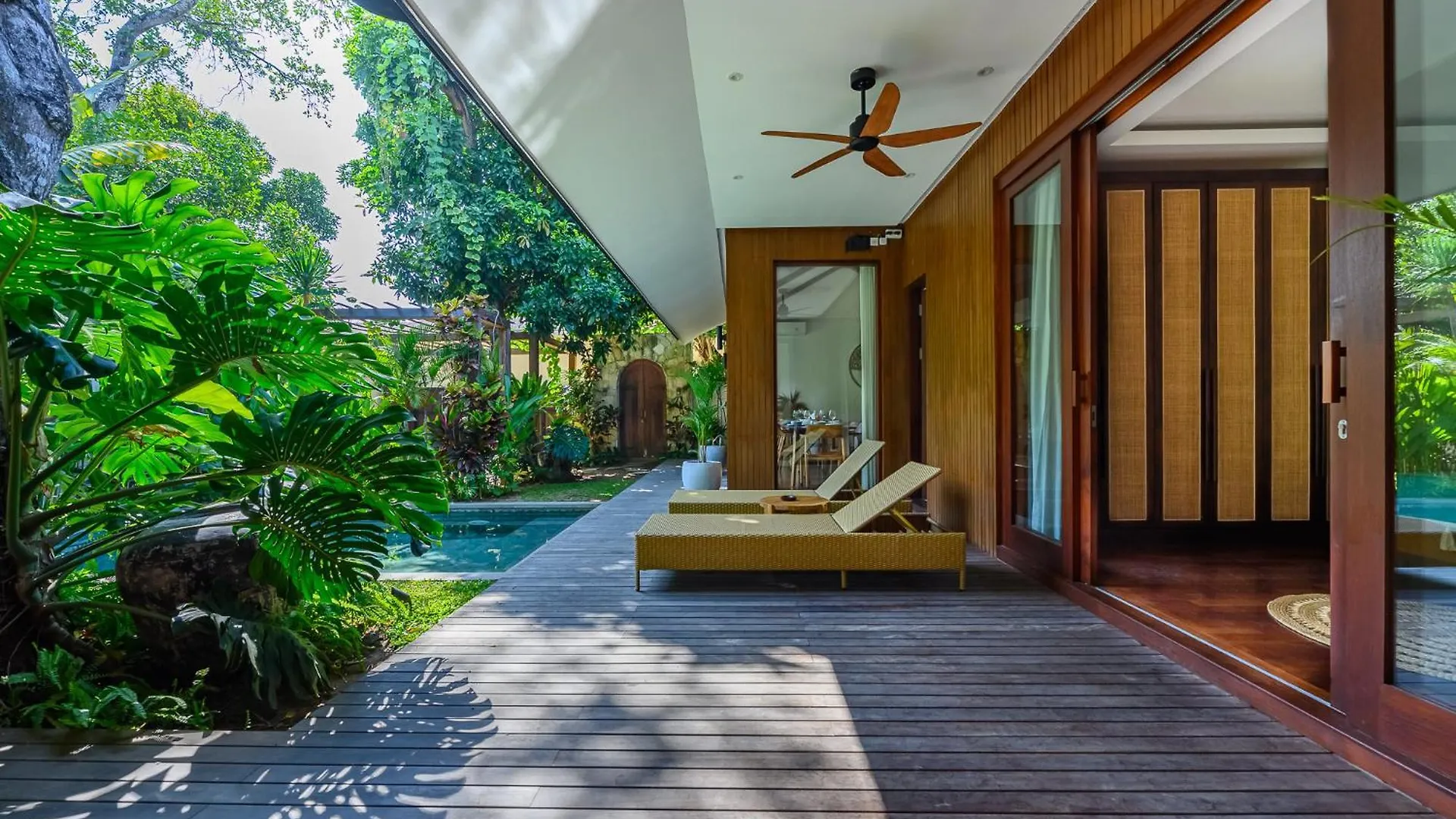 В вилле есть терраса с видом на сад.